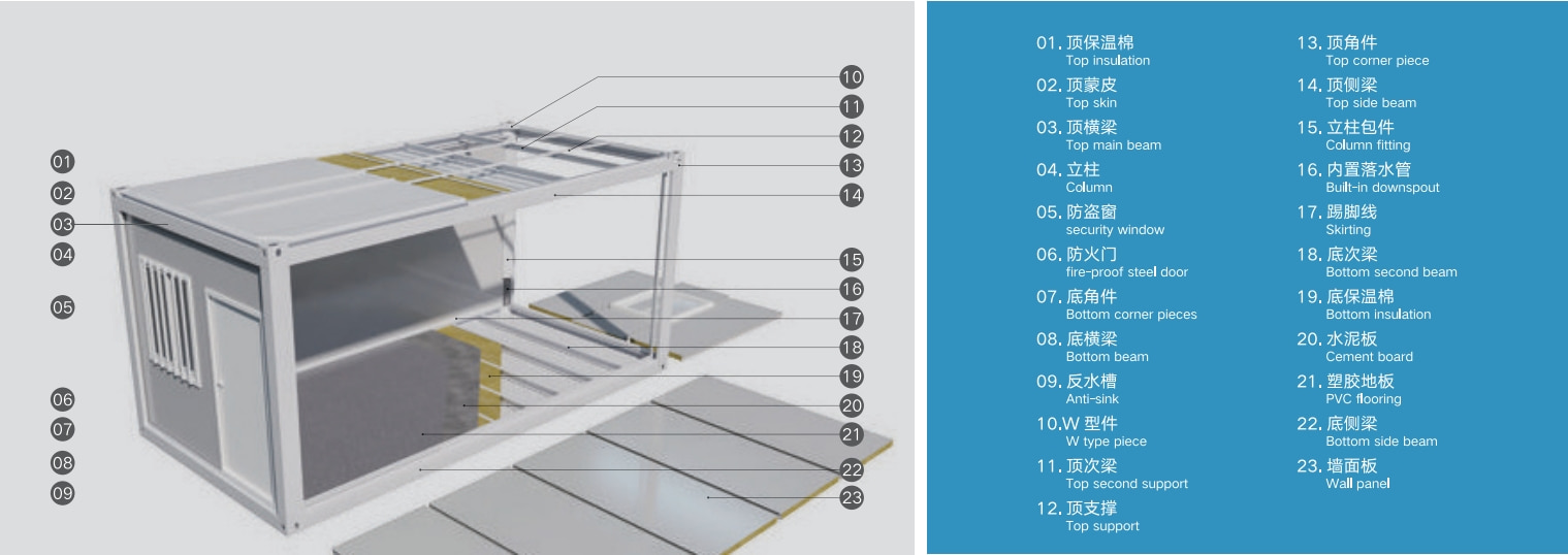 5. De acuerdo. Los fabricantes pueden personalizar el tamaño de la caja, la distribución interna (como la división de habitaciones y la ubicación de las ventanas), el aislamiento térmico, los estándares de decoración y la configuración de agua y electricidad según las necesidades del usuario.