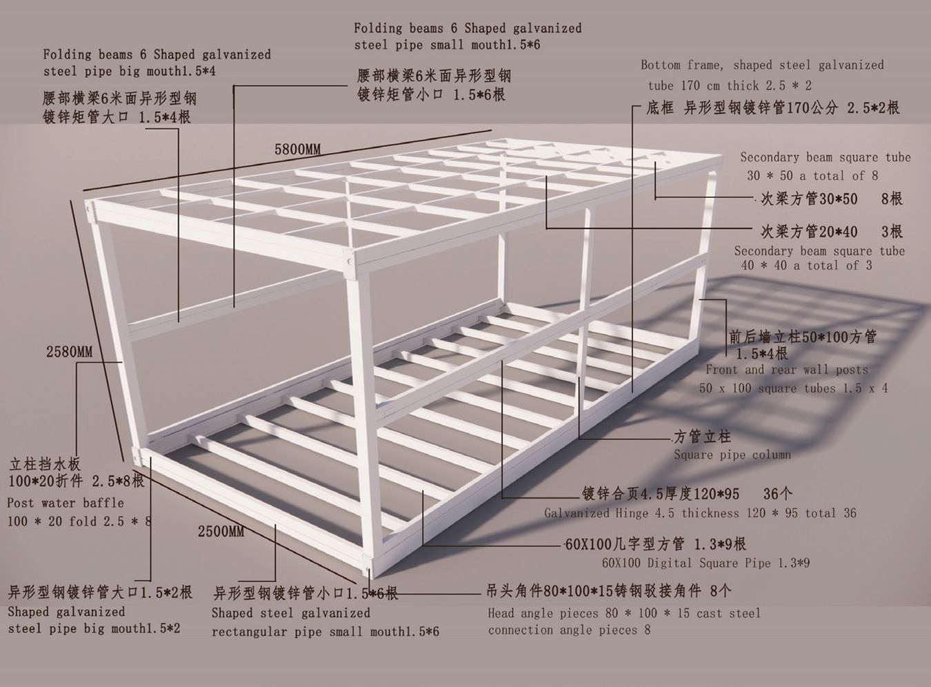 3.La estructura principal es de acero galvanizado, y las paredes y el techo son de paneles sándwich aislantes (EPS, lana de roca o PU). Estos materiales ofrecen buena durabilidad, aislamiento y resistencia al fuego.